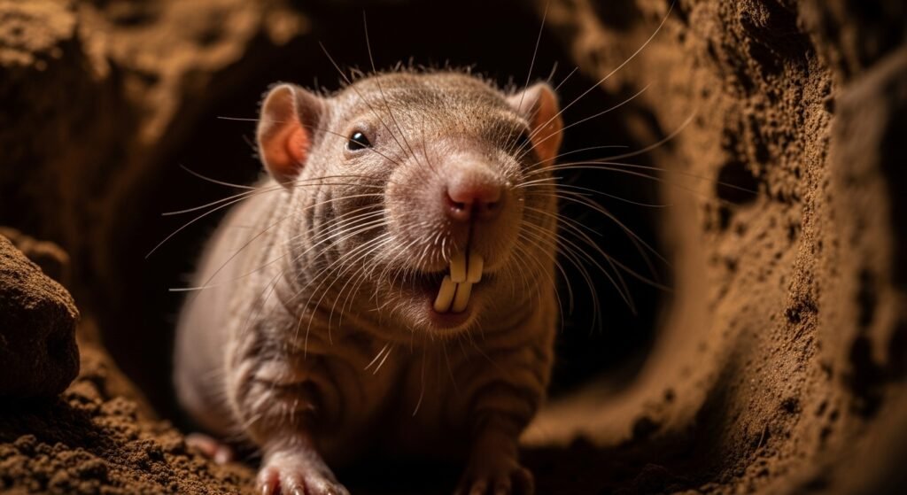 Underground colonies in Ethiopian dirt, blind and bald. No pain from acid or spice, live 30 years. Skin slippery, teeth grow forever for digging. Stops tumors cold with gene tricks. Immortal rodent club member.