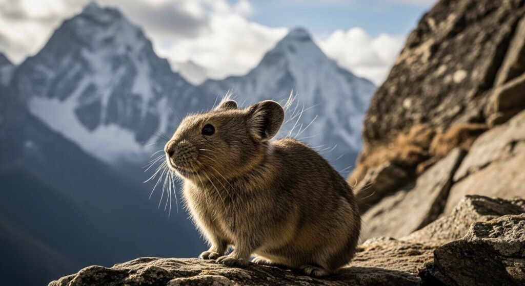 Burrows in sheer cliffs above 20,000 feet. Hay piles for eight-month winters, ears detect avalanches. Oxygen half of sea level? They hustle anyway. Predators slip; pikas scamper into cracks. Mountain ninja.