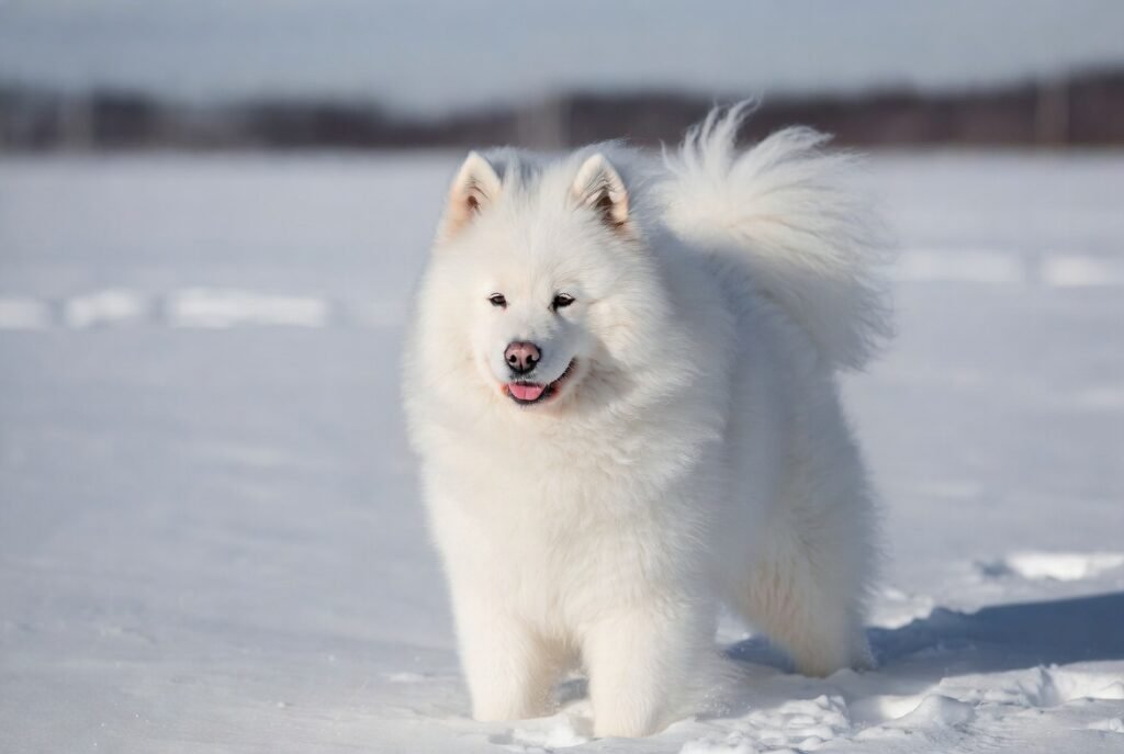 The Samoyed has a history as an ancient tribe of Siberia who used them as herding dogs and also as sources of warmth. Its amiable look and plump white fur show the millennia of evolution in the bleak climatic conditions and close interaction with humans.