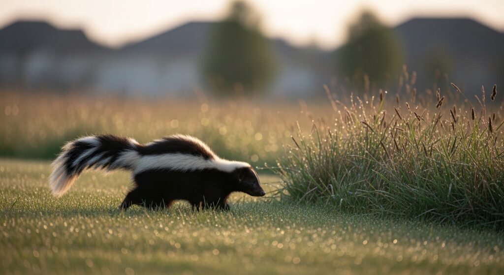 Skunks are common in suburban neighborhoods where they find shelter under balconies, galleries, and shanties. Skunks are generally non-aggressive and only spot when they feel hovered, making accidental hassles more common than dangerous ones.