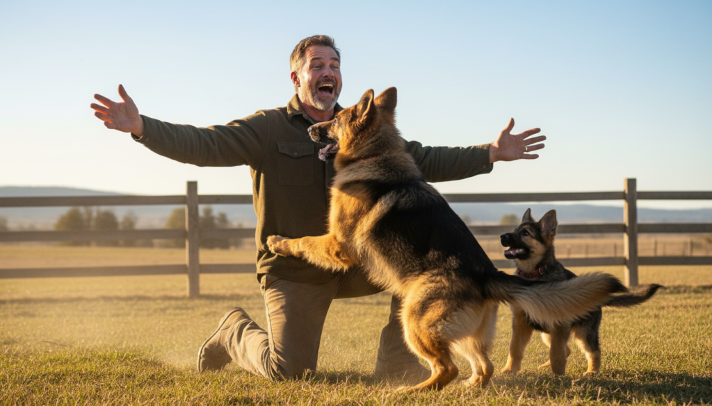 Whistle soft, rush joy-bark blast. Rehab pro Tom’s alpha shepherd ditched fence tests for instant heel. Baby tone yells “safe pack.”