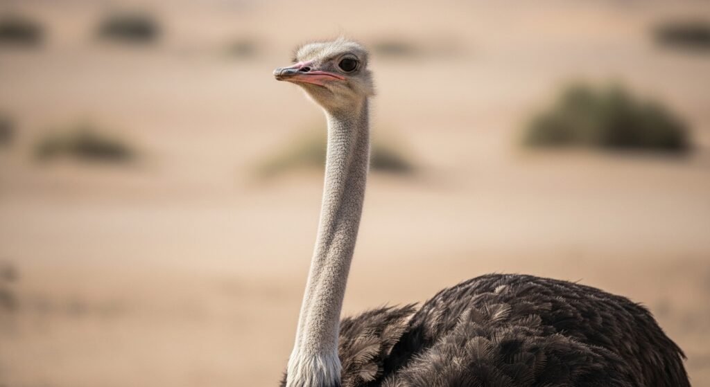Ostrichs do not bury their heads when alarmed. This myth probably began because they lower their heads to the ground to mix into their surroundings, especially when guarding nests. From a distance, this behaviour can appear as if their heads are buried. In reality, they calculate on speed, important kicks, and alertness rather than denial when facing danger.