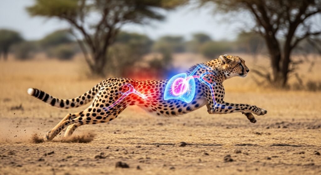 Compared to their body size, cheetahs have surprisingly large hearts and lungs. These organs pump oxygen-rich blood to muscles at high rates during a chase. This cardiovascular power supports the violent energy demands of high-speed stalking.