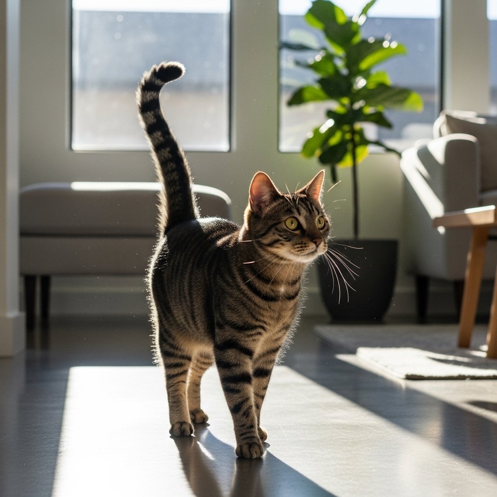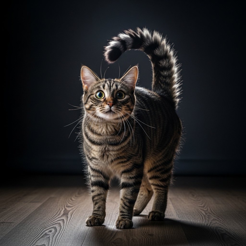 Tail movements reveal a cat’s emotional state. A high, upright tail generally signals confidence or benevolence, while a puffed- up tail indicates fear or agitation. Slow, gentle tail sways frequently mean curiosity, while rapid-fire flicking can gesture infection.