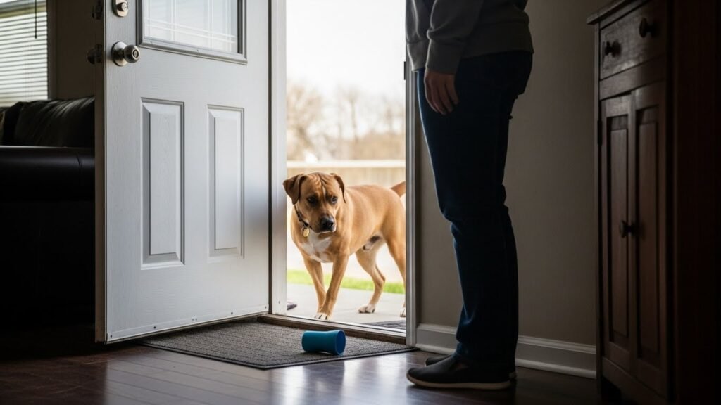 Violent, unblinking eye contact toward guests is a strong warning sign. Behaviorists call this a “hard eye,” and it reflects heightened alert and discomfort rather than curiosity.