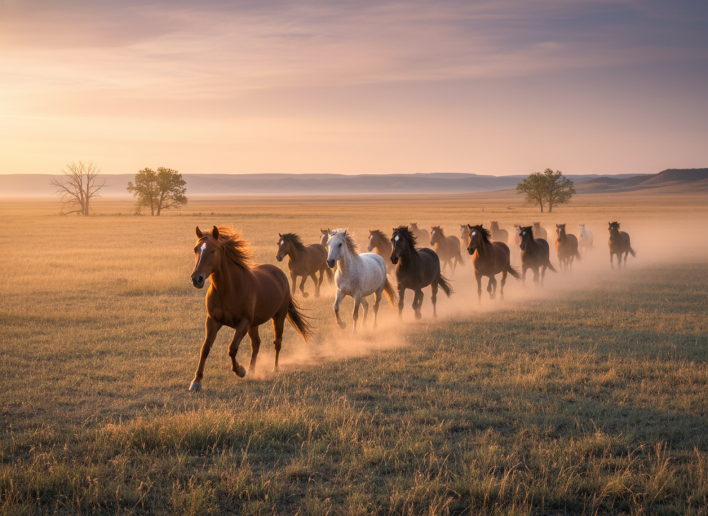 Wild horses calculate herd dynamics and speed for safety. When attacked, they fled together, guided by a dominant existent. Rather than fighting attackers, their strategy is to overrun them across open areas.