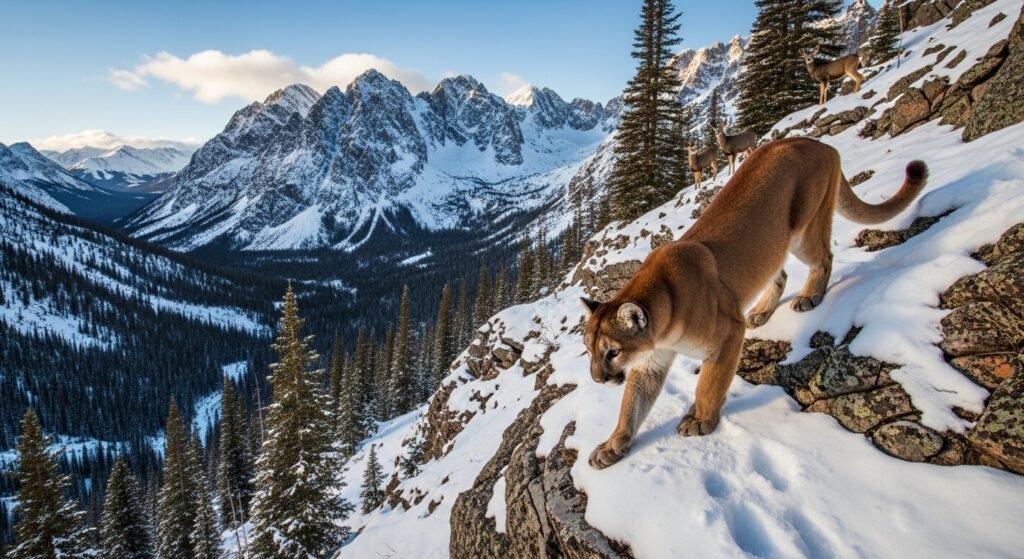 Colorado’s rugged Rocky Mountains are a classic mountain lion niche. Thick forests, steep  pitches, and abundant mule deer make the state ideal for these wildlife. Mountain lions are set up across western and central Colorado and are sometimes observed near suburban edges. The state laboriously manages its population through regulated stalking, balancing conservation with human–wildlife conflict forestallment.