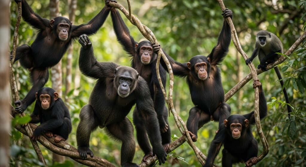 When hunting monkeys and other small mammals, chimpanzees parade largely advanced social cooperation. Searches are frequently led by high-ranking chimpanzees, but numerous members of the group must share for the quest to be successful.
