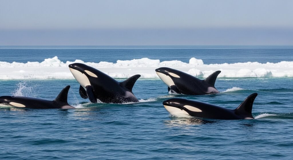 Orcas are among the most intelligent collaborative nimrods in the ocean. Different capsules specialize in unique stalking styles passed down through generations. Some orcas produce swells to knock seals off ice floes, while others punch fish before stunning them. These strategies bear precise synchronization and communication within the cover.