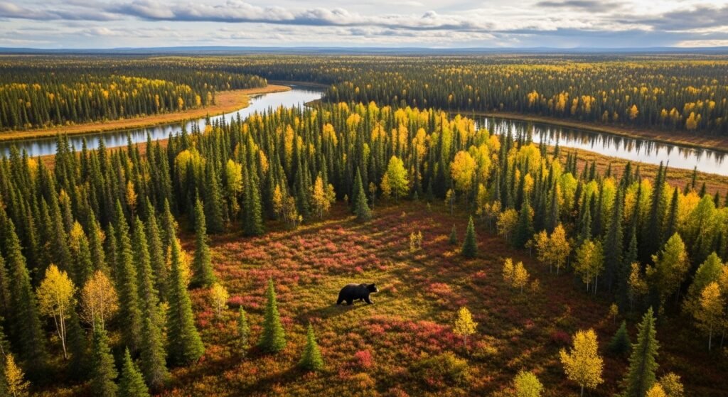 Alaska holds the largest black bear population in America, with vast boreal forest, and minimum civic fragmentation. expansive defended lands and low road viscosity reduce conflict, allowing bears to maintain wide home ranges and natural movement patterns.