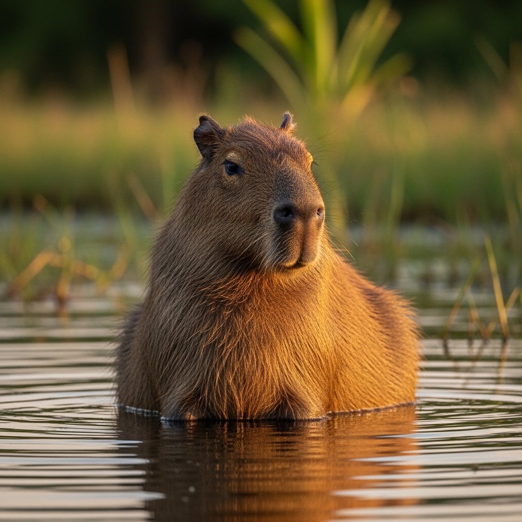 Capybaras aresemi-aquatic and spend most of their lives in washes and morasses. Their capability to float with only their tips above the face makes for serene, nearly cinematic images.