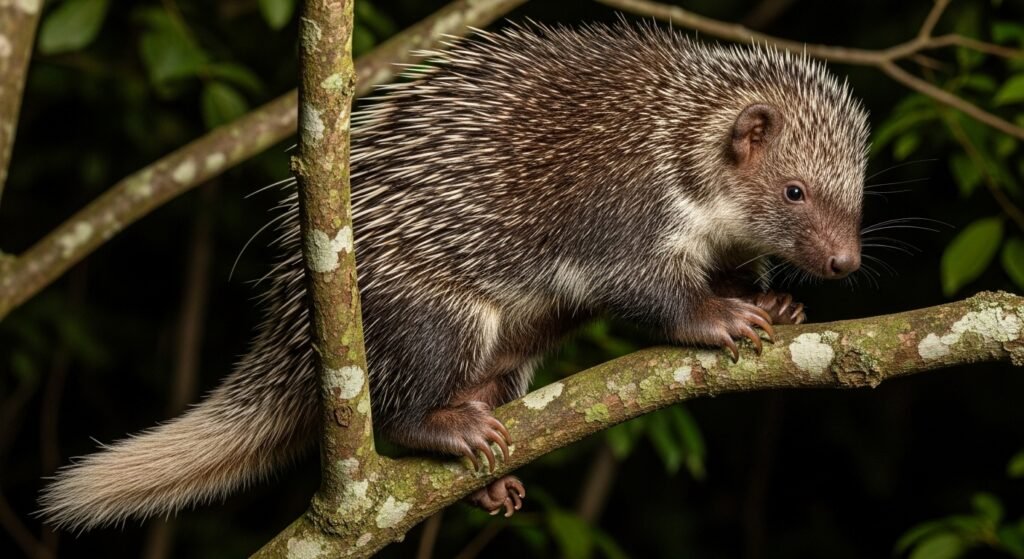 Tree porcupines are nightly arboreal rodents set up in the Americas. They have strong claws and an incompletely prehensile tail that helps them climb and balance in trees. Spending the most of their lives in the cover, they feed on leaves, and fruits while using trees for shelter from wildlife.