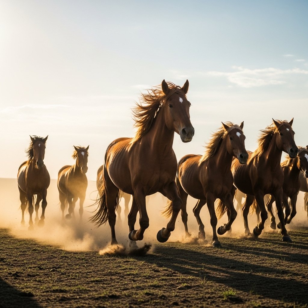 Wild horses calculate herd dynamics and speed for safety. When attacked, they fled together, guided by a dominant existent. Rather than fighting attackers, their strategy is to overrun them across open areas.