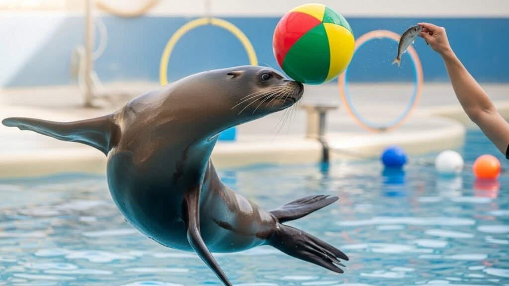 Sea lions display advanced literacy and memory abilities, particularly in training surroundings. They can understand abstract generalities similar to figures and patterns. Sea lions are also capable of collaborative behaviour and can follow complex sequences of commands, indicating high cognitive inflexibility.