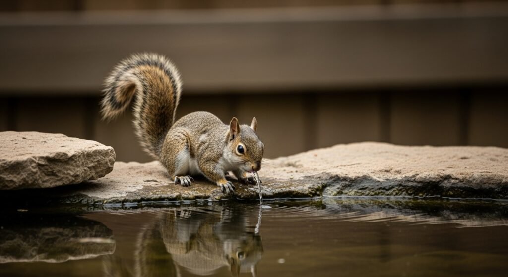 There are different sources of water through which squirrels keep themself hydrated such as birdbaths, and small ponds offer essential hydration. During dry seasons or extreme heat, squirrels are drawn to yards that constantly give fresh water.