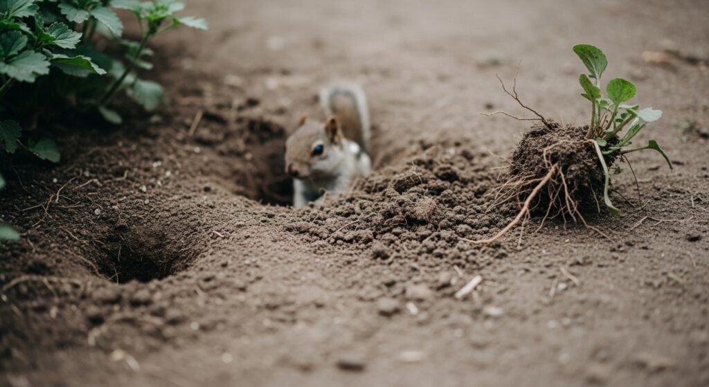 Squirrels bury food leftover in soil and frequently dig the area, damaging roots and disturbing landscaping in the process.