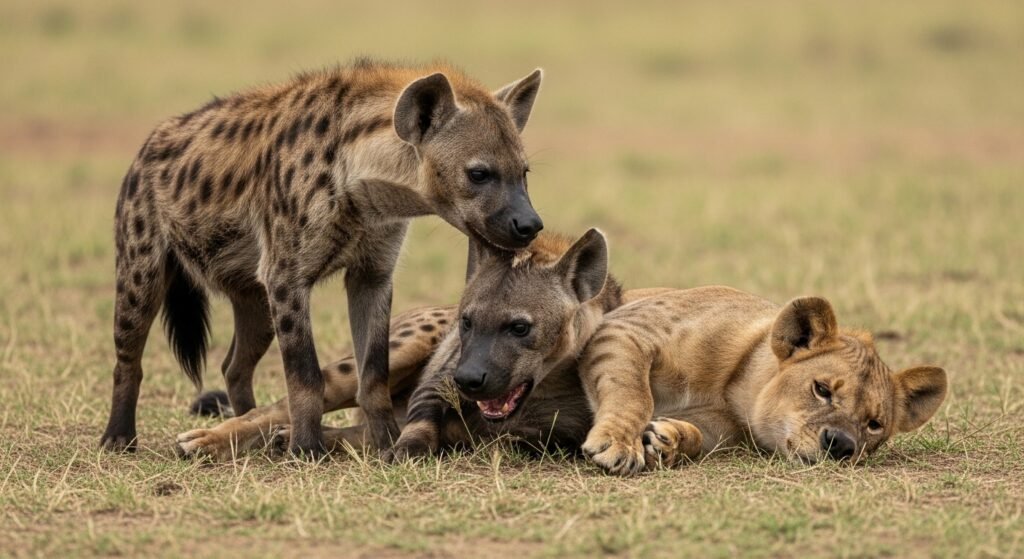 In competitions with lions, hyenas calculate on group figures, abidance, and important jaws. Large clans can kill lions down from kills and sometimes injure or kill isolated individuals. The contest between these two wildlife is one of the most violent competitive connections in African ecosystems.