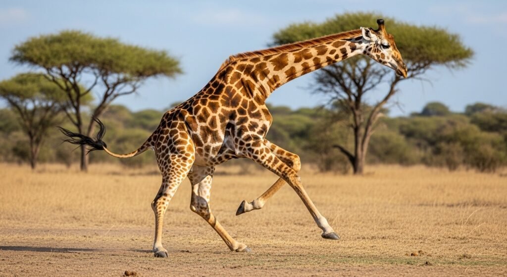 Their long legs deliver kicks important enough to shatter a lion’s cranium or chine. When hovered, a giraffe plants its bases and swings its legs in a wide bow, creating a dangerous border. Lions target pins more frequently than grown-ups, as one accurate kick from a full-overgrown giraffe can immediately end an attack.