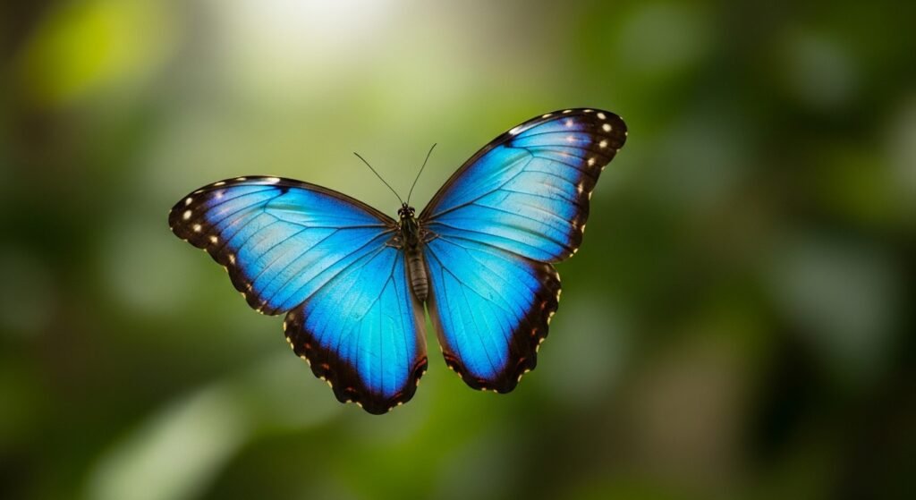 Its vibrant blue color is created not by color, but by bitsy scales that reflect light. When in flight, flashes of electric blue are described with earthy brown underparts, creating a mesmerizing visual effect in tropical forests.