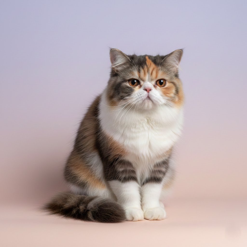 The Exotic Shorthair calicos are the same as Persians, with the sweet facial features though with a short and plush coat, which is easy to handle. They are loving and also easy-going, thus good as house animals.