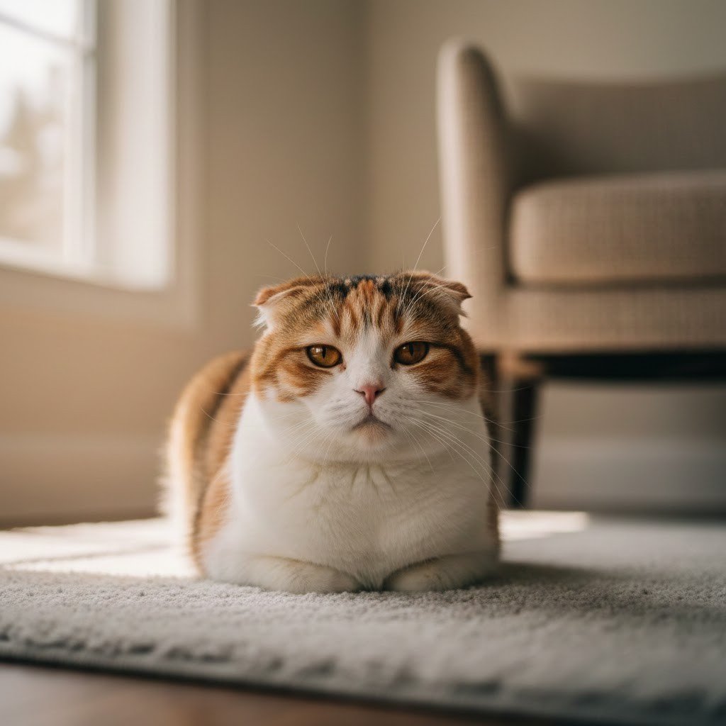 The Scottish Fold calico is characterized by its inward ears, which give them have a distinctive expression of the owl. They are also tender, devoted, and attached to their families.