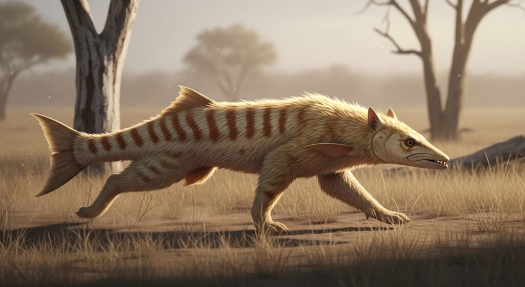 Rather than the familiar orange fleece with bold black stripes, this barracuda displays pale gold fur crossed by soft cinnamon lines. This achromatism likely provides effective disguise in dry champaigns and sun- blanched forests. The softer pattern diffuses the animal’s figure, making discovery more delicate at distance.
