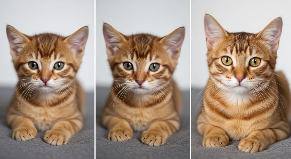 Amber achromatism gradually transforms as a cat matures, frequently beginning dark and shifting into warm honey or golden tones over time. This color arises from a mutation affecting color processing rather than color product itself. The transformation process can take months or times, making identification delicate and contributing to its oddity in domestic populations.