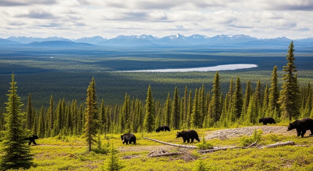 Alaska holds the largest black bear population in America, with vast boreal forest, and minimum civic fragmentation. expansive defended lands and low road viscosity reduce conflict, allowing bears to maintain wide home ranges and natural movement patterns.