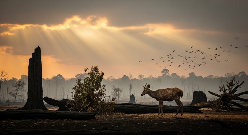 Wide forest fires have displaced innumerous creatures, destroying nesting grounds and food sources. Wildlife recuperation centers are overwhelmed, and long-term ecological damage is becoming a major public concern.
