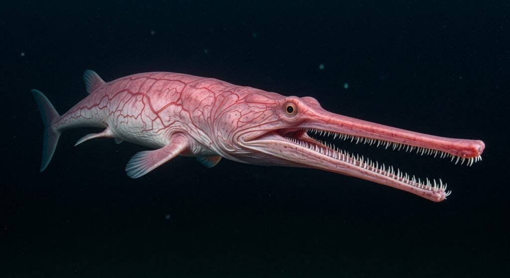 Frequently described as a “living reactionary,” the troll wolf inhabits deep ocean waters and has remained fairly unchanged for millions of times. Its jaw allows it to capture food efficiently in the darkness of the deep ocean, where openings are rare. Its pinkish skin, due to visible blood vessels, and stretched conk contribute to its unearthly appearance.