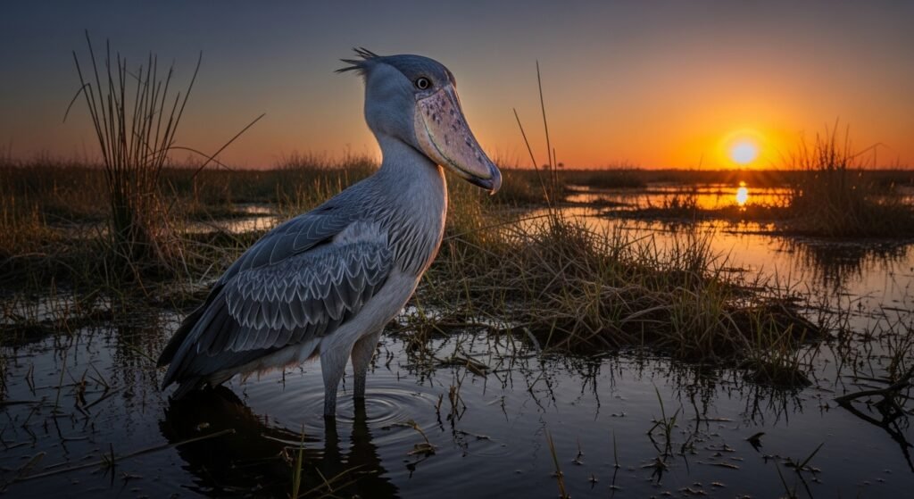 Its intimidating appearance is matched by behaviour that seems nearly reptilian. Shoebills frequently stand motionless for long ages before submersing at prey. Fossil substantiation suggests that analogous- looking birds have been for millions of times, making them living monuments of avian evolutionary history.
