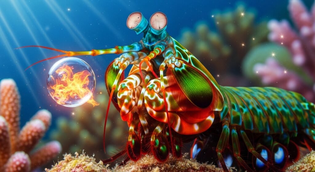 With over sixteen types of photoreceptor cells (compared to three in humans), it can perceive concentrated light and describe wavelengths beyond human vision. Its punch is inversely astonishing. Some species strike prey with similar speed that the impact generates cavitation bubbles, compactly producing temperatures similar to the face of the sun.
