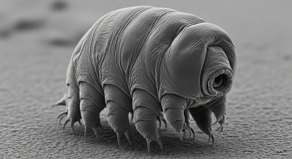 Also known as “water bears,” tardigrades are bitsy creatures able to survive conditions that would kill nearly any other life form. They can endure extreme heat, indurating temperatures, radiation exposure, violent pressure, and indeed the vacuum of space. Their secret lies in a state called cryptobiosis.