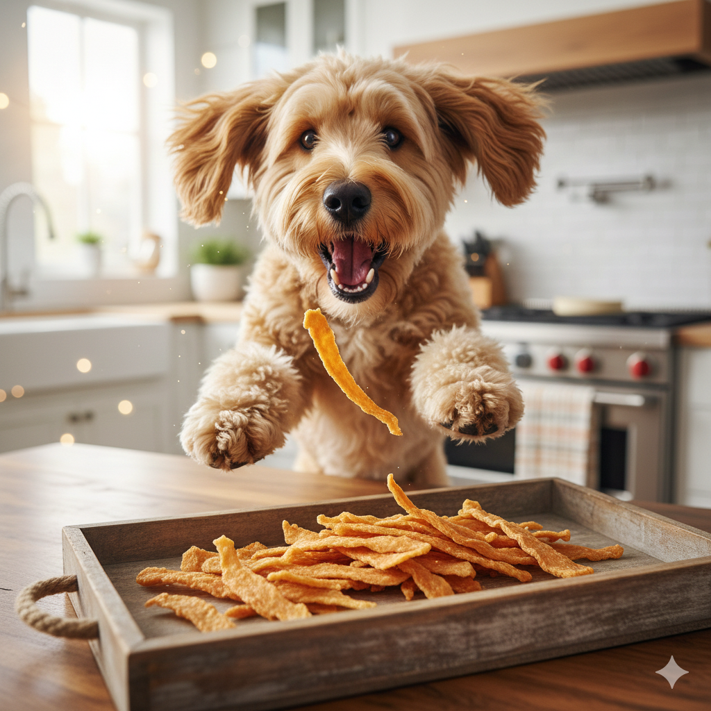 Salmon skins rolled tight, baked crisp, omega boost for shiny coats. Stella & Chewy’s version has my neighbor’s husky drooling from across the room. Fishy smell hooks them instantly. Great for picky eaters.