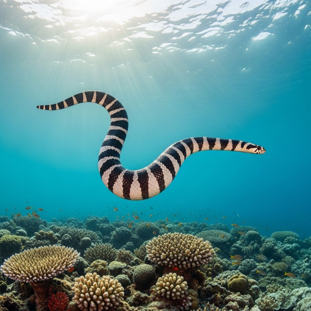 This extensively distributed ocean snake has largely potent venom but infrequently bites humans. Due to the oddity of envenomation cases, no treatment is available. A bite can bring muscle breakdown, palsy, and order failure if not managed instantly.