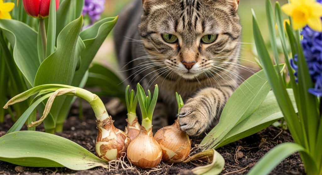 These popular plants contain venom concentrated substantially in the bulbs. Cats that dig or bite on them may witness violent gastrointestinal infection, drooling, puking, diarrhea, and abdominal pain. Large ingestions can bring heart rate changes and breathing difficulties.