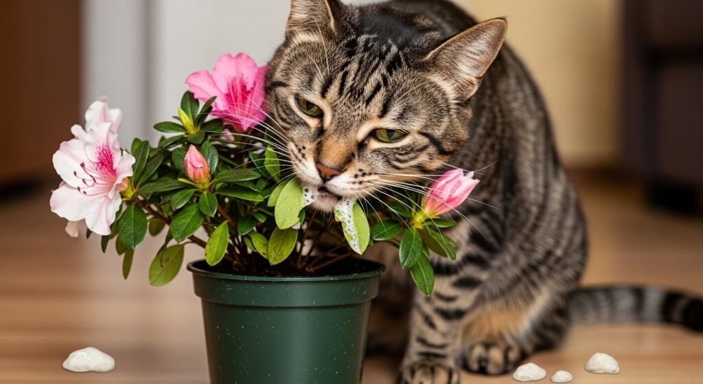 These cosmetic shrubs contain grayanotoxins that intrude with normal muscle and nerve function. Cats that ingest azalea leaves or flowers may suffer from puking, diarrhea, weakness, and immediate drooling. Severe poisoning can affect low blood pressure, coma, and life-hanging cardiac issues.