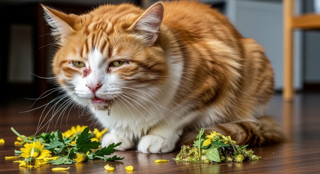 Chrysanthemums have pyrethrins, which are composites of germicides. In cats, ingestion causes drooling, vomiting, diarrhea, and lack of cooperation. Some cats may also develop skin infection or acuity responses after contact.