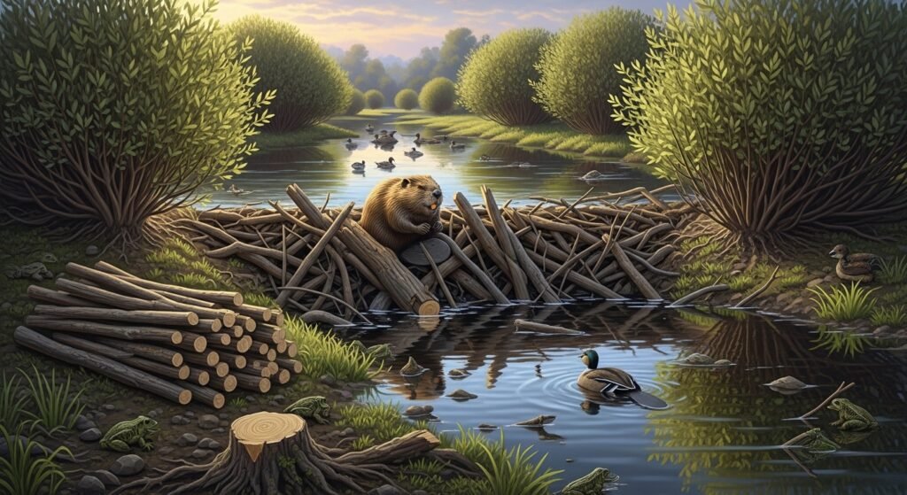 Beavers depend heavily on willow for food and levee construction. When willow populations declined due to overgrazing, beaver colonies also downscaled. As willow stands recovered, beavers returned to areas they had abandoned. These washes provided a niche for amphibians, fish, waterfowl, and submarine insects, amplifying the ecological ripple goods initiated by wolves.