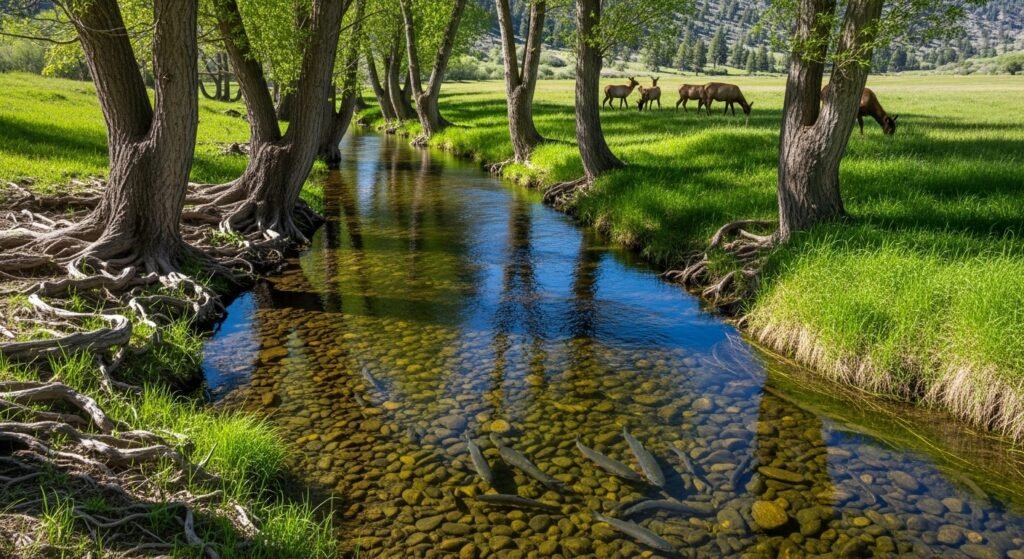 The presence of wolves created what ecologists call a “geography of fear.” Indeed in areas where wolves were not laboriously hunting, elk became more conservative. They avoided narrow dense corridors and high ambush locales for wildlife. This behavioral shift reduced nonstop browsing on youthful trees, particularly willow, aspen, and cottonwood. R