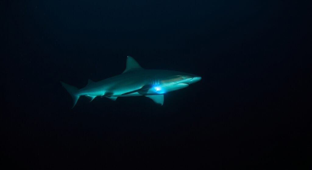 Some sharks are bioluminescent. For example lanternsharks are capable of producing their own light. This light helps sharks to hunt their prey in the dark and also helps them in communicating with other sharks. They also confuse prey in the dark deep sea where the travelling of light is impossible.
